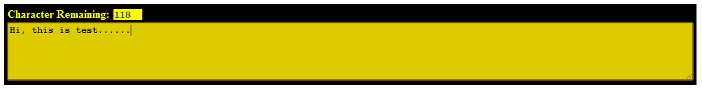 This is about creating a character counter for textarea and limit it accordingly. You may have seen this kinda stuff in some messaging site mostly in sites which provides SMS facilities. They limit us to enter only specified number of characters in text area. Also in some sites there are limitation on characters in comments. So this article will help you in building a similar thing which will look like below picture: